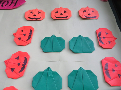 10月の折り紙カレンダーは、ススキ・ふくろう・くり・ハロウィンかぼちゃです。